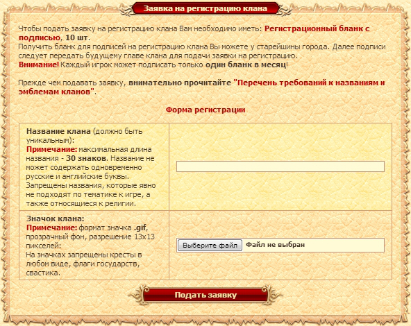 В данном учебнике мы подробно расскажем о том, как правильно подать заявку на регистрацию клана.
