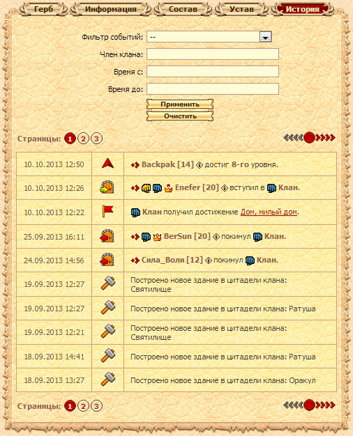 История клана – это специальная вкладка в окне клановой информации, где вписаны самые знаковые события и даты из жизни клана: