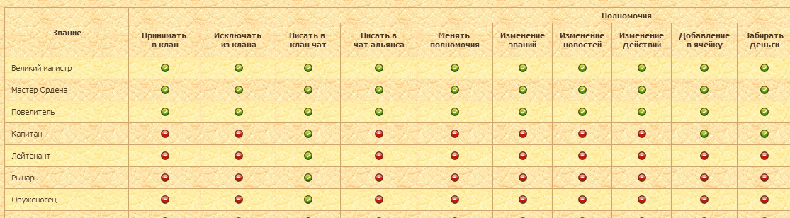 Глава клана имеет доступ ко всем функциям клана и может выдавать доступ к тем или иным функциям разным званиям.