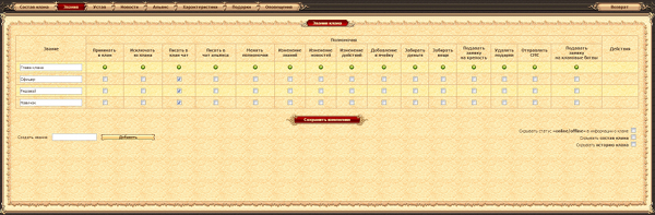 Кроме того можно изменить звания со стандартных на уникальные, подходящие под тематику клана.