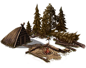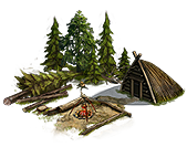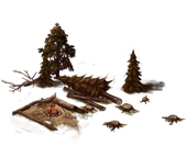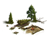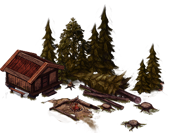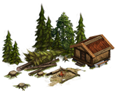 На этой поляне не смолкает стук топоров, звон пил и грохот падающих деревьев. Здесь производится заготовка брёвен