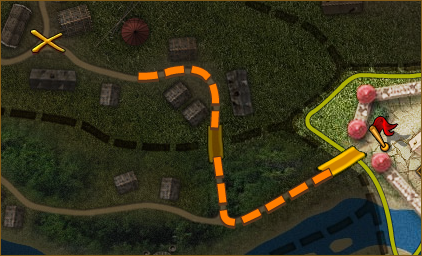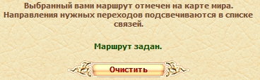 На карте появится золотой крест в середине нужной Вам локации, и оранжевый пунктир через все локации, между той, где Вы находитесь и нужной.