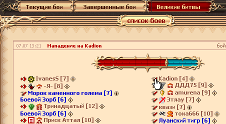 Битва становится великой, если в ней участвует более десяти человек и десяти древних. В такой битве нельзя использовать мороков и ездовых животных, а соотношение мощи противоборствующих сторон показывает специальный индикатор: